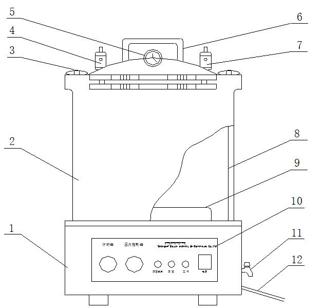 ★容器蓋裝有安全閥、放汽閥。安全閥壓力超過0.14兆帕后能自動釋放過高的壓力,性能可靠,滅菌前打開放汽閥可排放冷空氣及滅菌結束時進行上排汽。