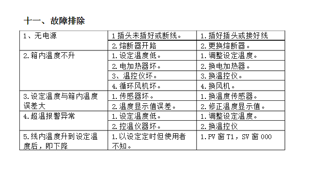 6.如使用定時(shí)功能時(shí),只有**次PV>SV時(shí),即箱內(nèi)溫度高于設(shè)定溫度時(shí),定時(shí)器開始工作(采用倒計(jì)時(shí)),同事SV數(shù)碼末位上的一位小數(shù)點(diǎn)閃爍。定時(shí)結(jié)束,SV顯示End,末位小數(shù)點(diǎn)熄滅,同時(shí)切斷加熱器電源。