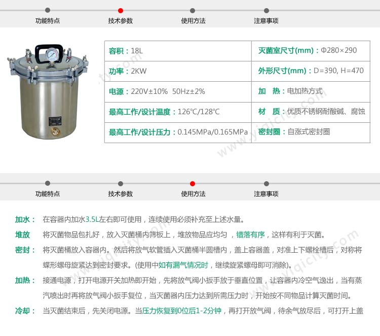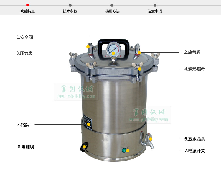 品名:電加熱手提式滅菌器(蝶型螺母開蓋型)